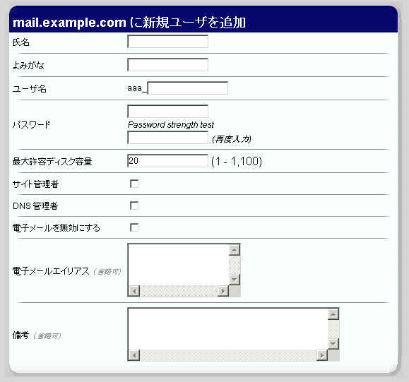 このユーザに割り当てるディスク容量(MB)を設定します。