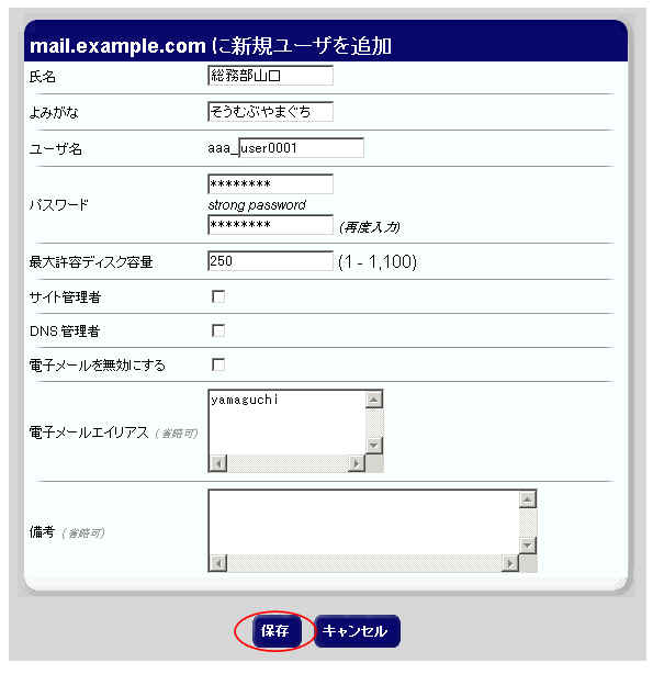 ここで入力された内容は、ユーザリストの氏名欄に表示されます。