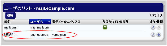 正常に完了した場合、ユーザ一覧に、追加したユーザが表示されます。