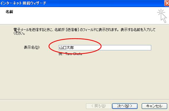 ここに表示された内容が、送受信の時の一覧や、アカウントウィンドウに表示される名前となりますので、必要があれば変更してください。 |