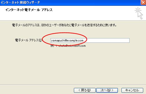 電子メールアドレス欄に、設定したメールアドレスを入力します。